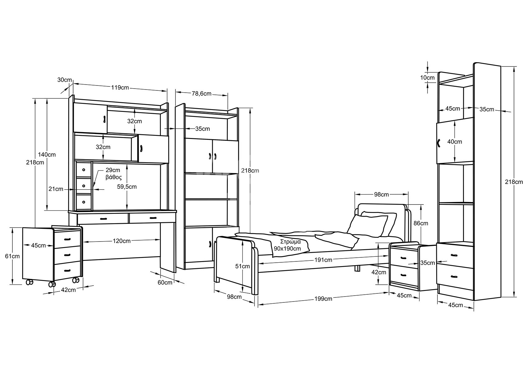 Παιδικό δωμάτιο ΓΗ 8 Ξύλο Μασίφ Οξιά - MDF καπλαμά οξιά