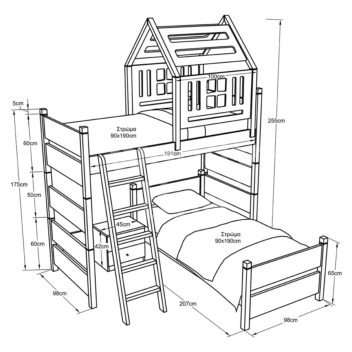 Παιδικές κουκέτες από ξύλο μασiφ - MDF καπλαμά